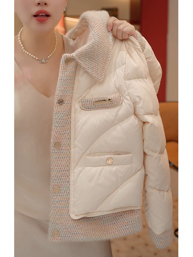 高端羽绒棉服女款2025冬季新款法式小香风轻薄翻领保暖面包服外套