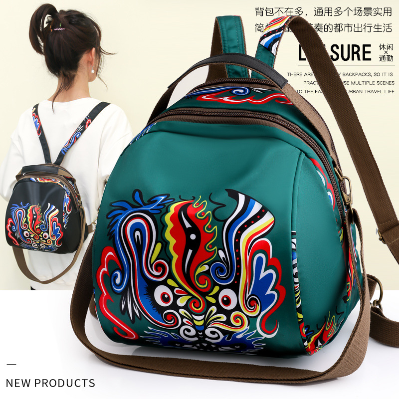 国境を越えた国潮風プリントバックパックの新型女性カジュアルバックパックの二重多容量貝殻バッグ