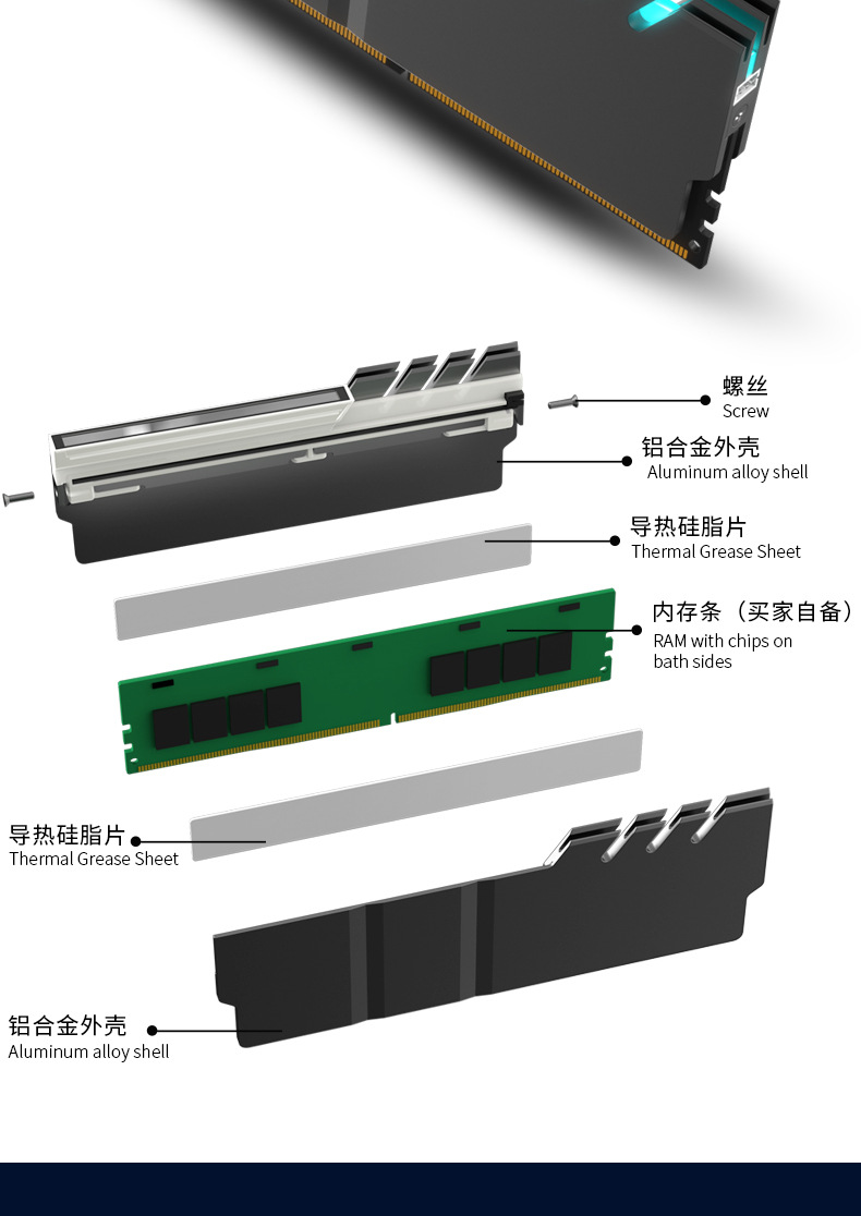 デスクトップメモリストリップ発光冷却ベスト ARGB 神光同期メモリ冷却ベスト DIY 装飾シェル