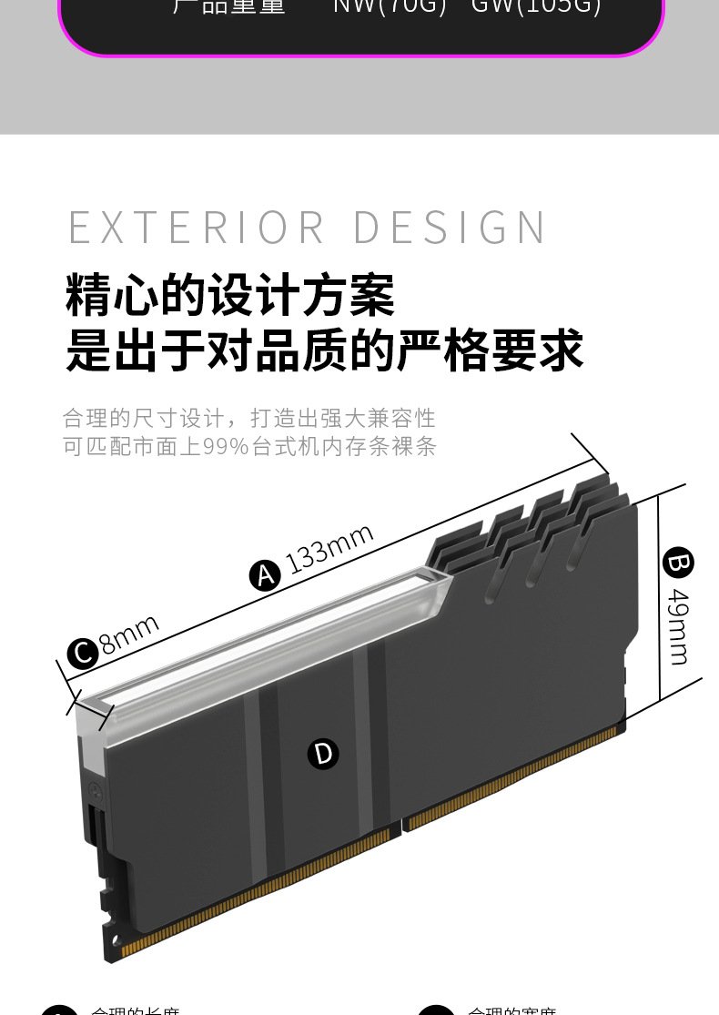 億科貝拉花中鏡メモリ馬甲メモリストリップ放熱器神光同期コンピュータ部品ケース装飾
