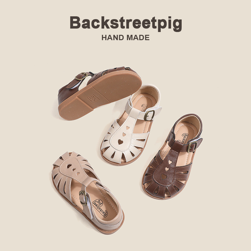 包頭女児サンダル2025夏の新型赤ちゃんビーチサンダル滑り止めローマ洋気男童靴英倫風