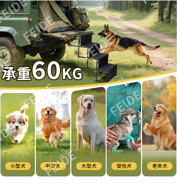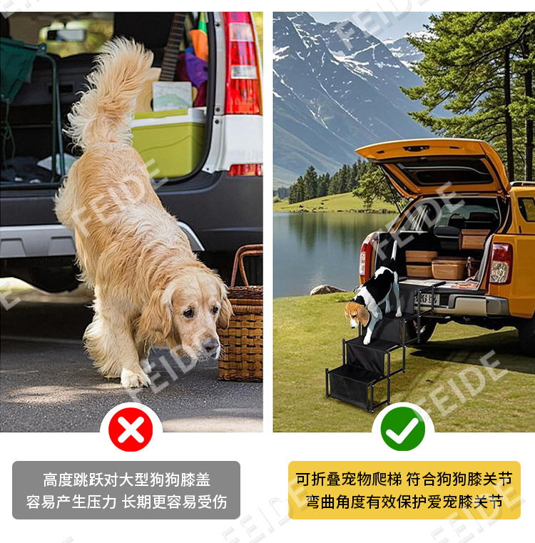 Amazonで人気のクロスボーダー折りたたみ式車載大型犬用ペット階段、車載ペット階段