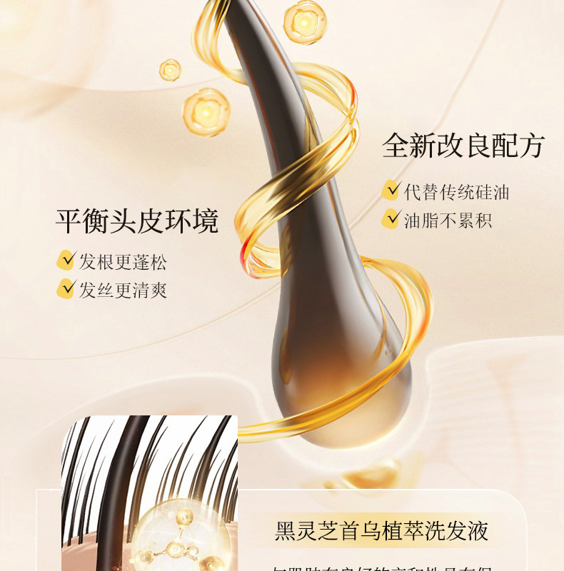 黑灵芝首乌植萃洗发液何首乌洗发水草本植物萃取控油蓬松厂家代发