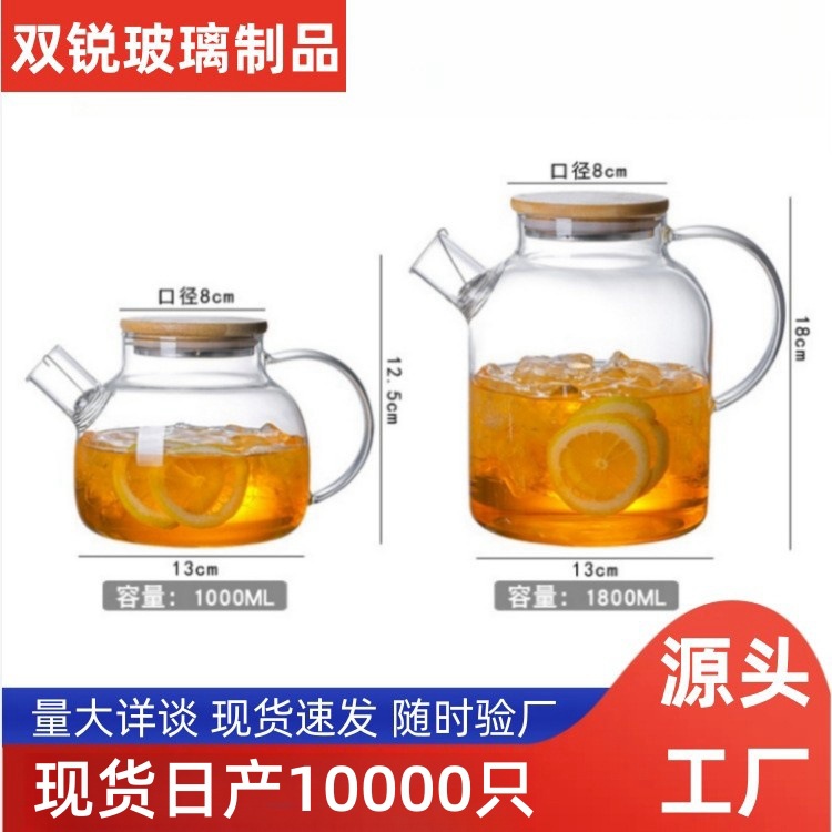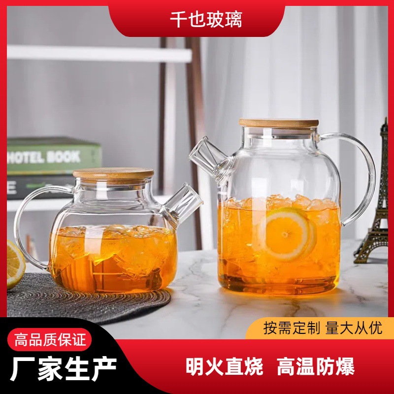 アマゾンクロスボーダー専用冷水ポット高ホウ素シリコン透明ガラス囲炉茶花ティーポット竹木蓋冷水ポット