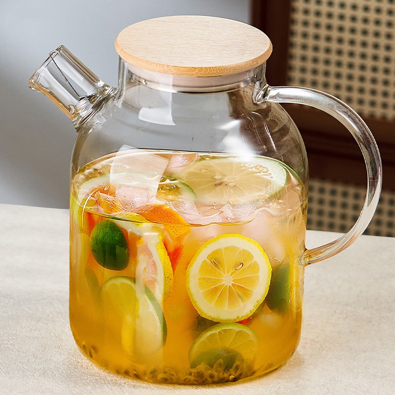 竹木蓋北欧四季壺大容量高ホウ素シリコンガラス水筒家庭用フィルター付き水筒