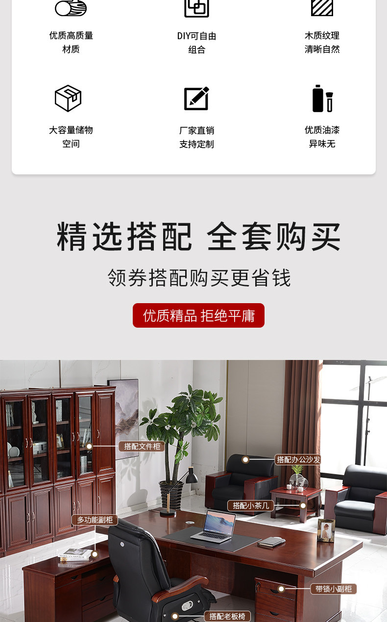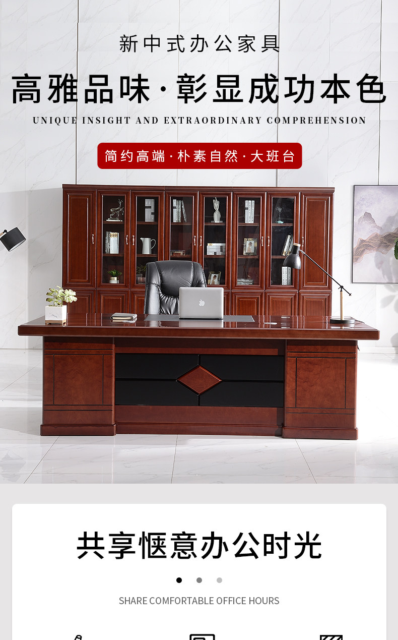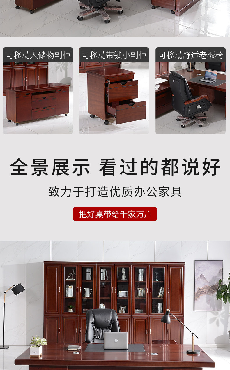 シンプルモダンな中国風ボスデスク、スーパーバイザーデスク、エグゼクティブデスク、社長室デスク、本棚、テーブルと椅子