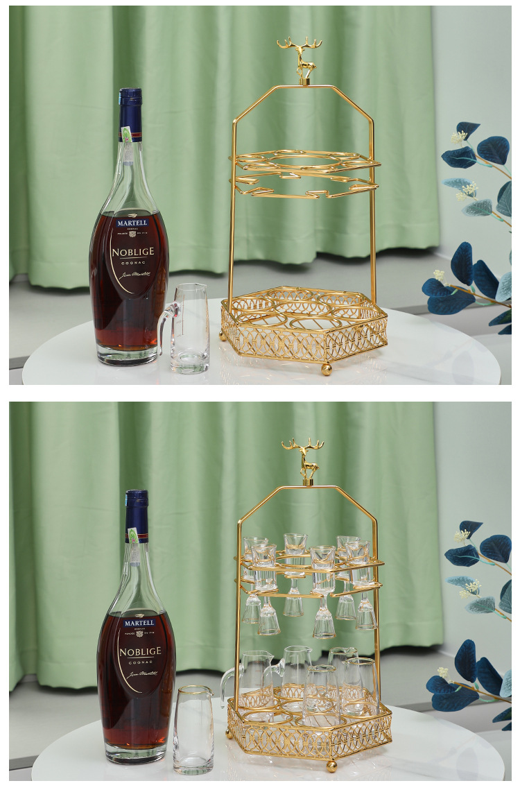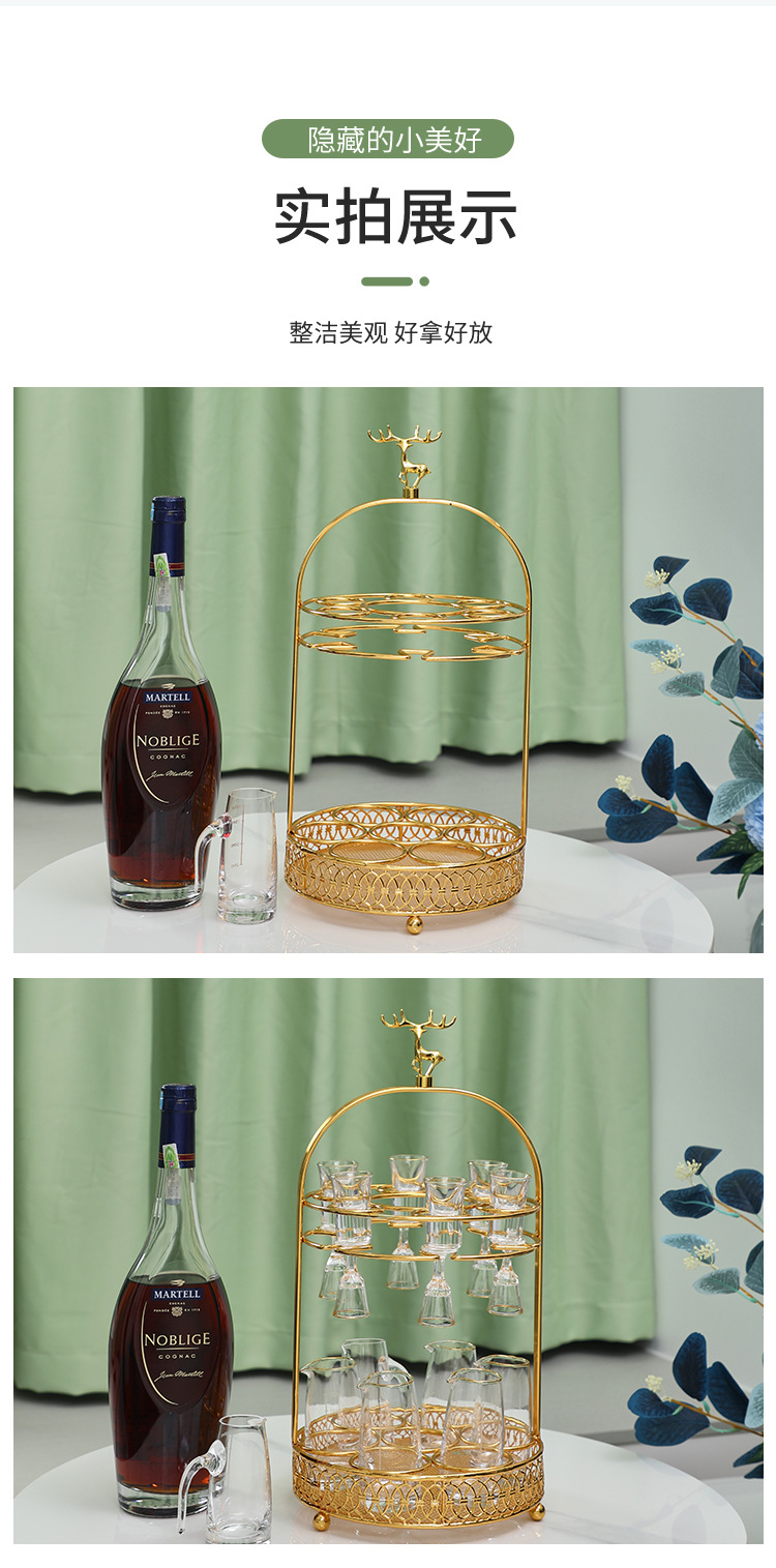 ヘラジカの白酒の杯の棚の軽い豪華な高級の酒器の杯の棚は家庭用の台所の酒器の収納棚を掛けてトレーを持ちます。