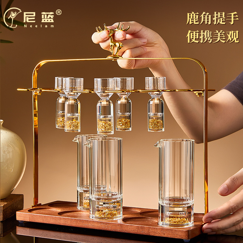 鹿白酒杯棚新中国式高級分酒器杯棚家庭用酒器専用木底托棚白酒杯棚