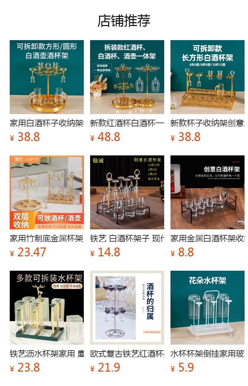 鉄芸白杯棚現代シンプル優等品強い酒杯棚着脱式酒器酒杯棚