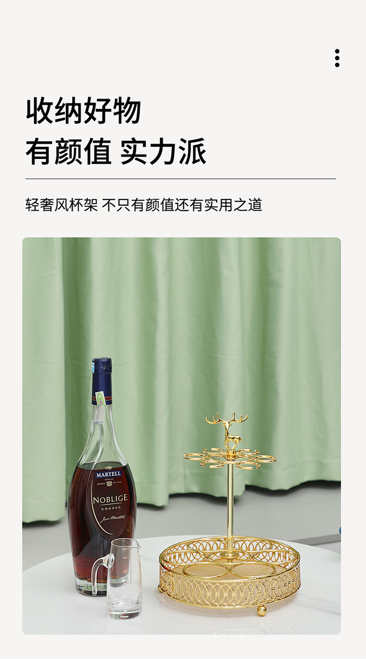 新型回転式ワイングラススタンド、逆さ高脚グラススタンド、リビングルーム装飾、ワイングラススタンド、金色の鹿ワイングラススタンド