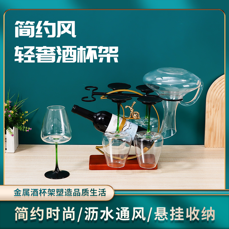 軽くて豪華なワインの杯の棚の鉄線の棚の実木の底の高足の杯の棚の月の玉のウサギの杯の酒を覚まします器の収納棚