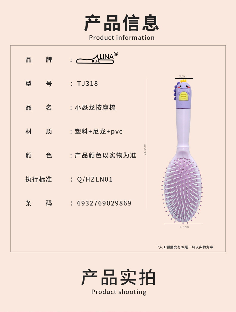 カラー オリジナルip恐竜王子エアクッションマッサージ櫛 (許可可能)