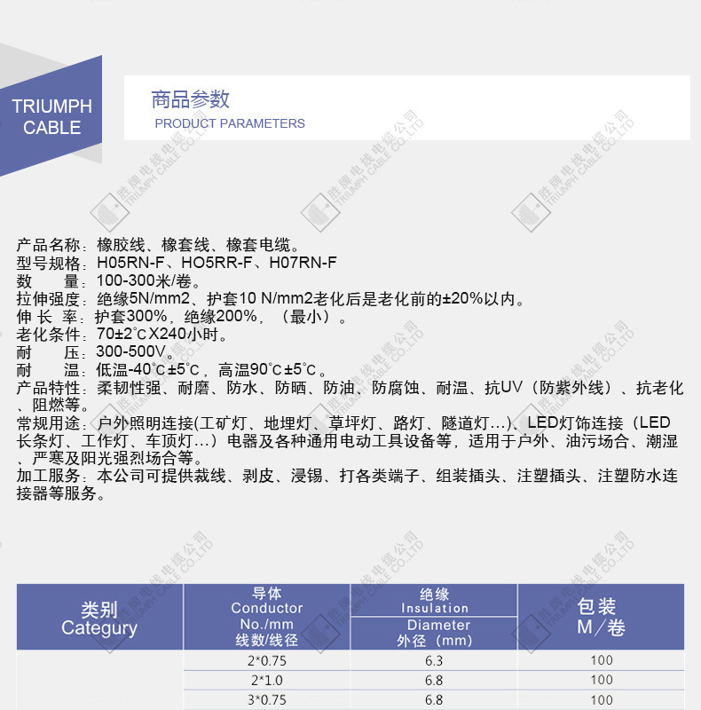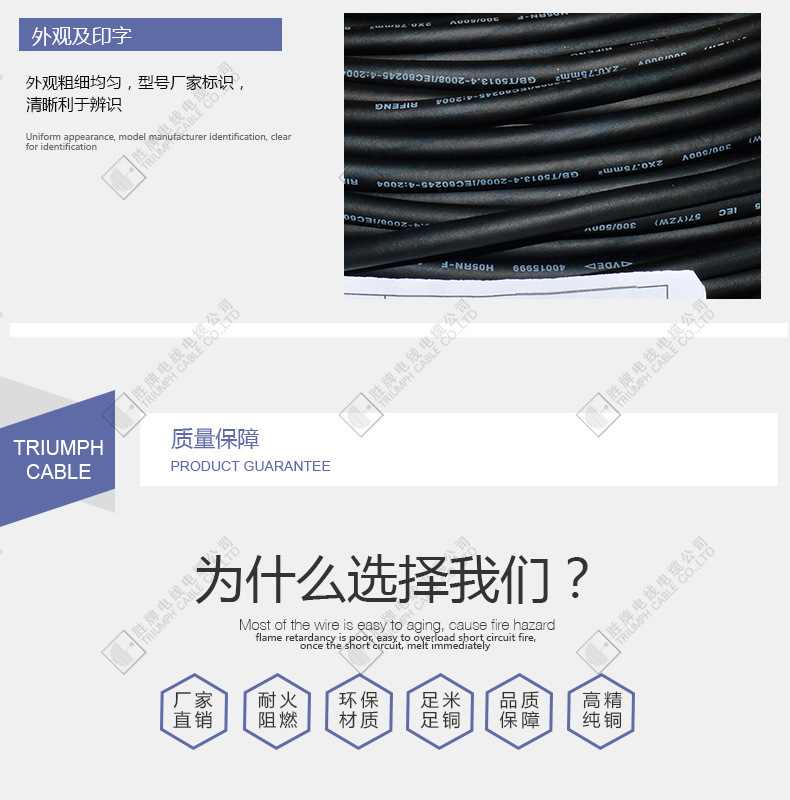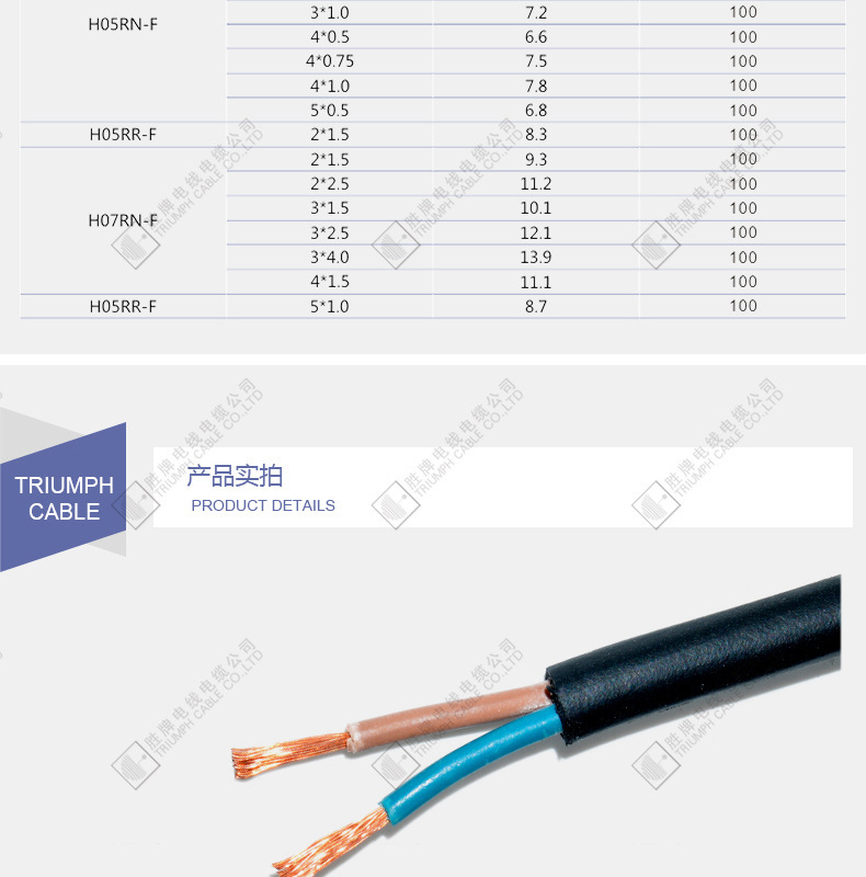 勝牌抗uvゴム線H07RN-F3*1.0 H05RN-F/yzw 2*2.5耐摩耗性低温老化防止