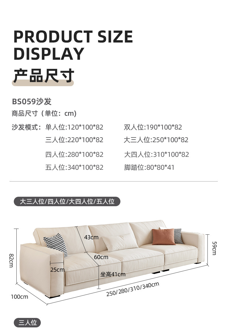 シングル: 120cm,二人席: 190cm,三人席: 220cm,大三人位:250cm,四人位:280cm,大四人位:310cm,五人位:340cm,大きい足セット
