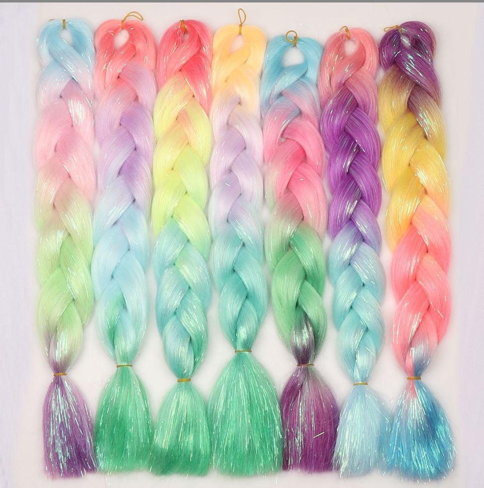 【产品材质】镭射pet丝线+高温丝彩色大辫子