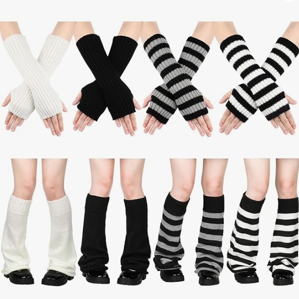 冬の指の手袋秋の冬の保温ニットのストライプの腕のカバー