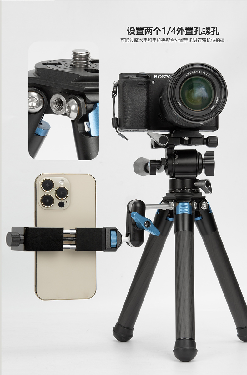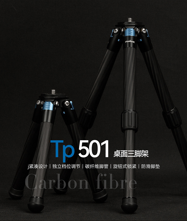 マンジーケ501カーボンファイバー階段昇降三脚、一眼レフカメラ、スマホ、ミラーレスカメラ用三脚セット、軽量カーボンファイバー