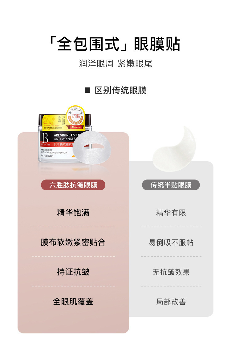貝玲美六勝ペプチド抗シワアイマスクは保湿を貼って目の周りを引き締めます。