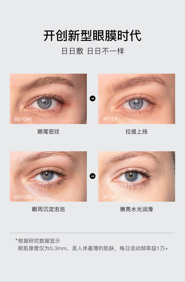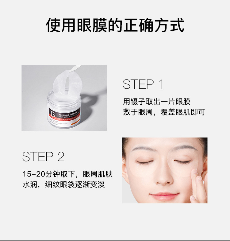貝玲美六勝ペプチド抗シワアイマスクは目の周りに貼られています。