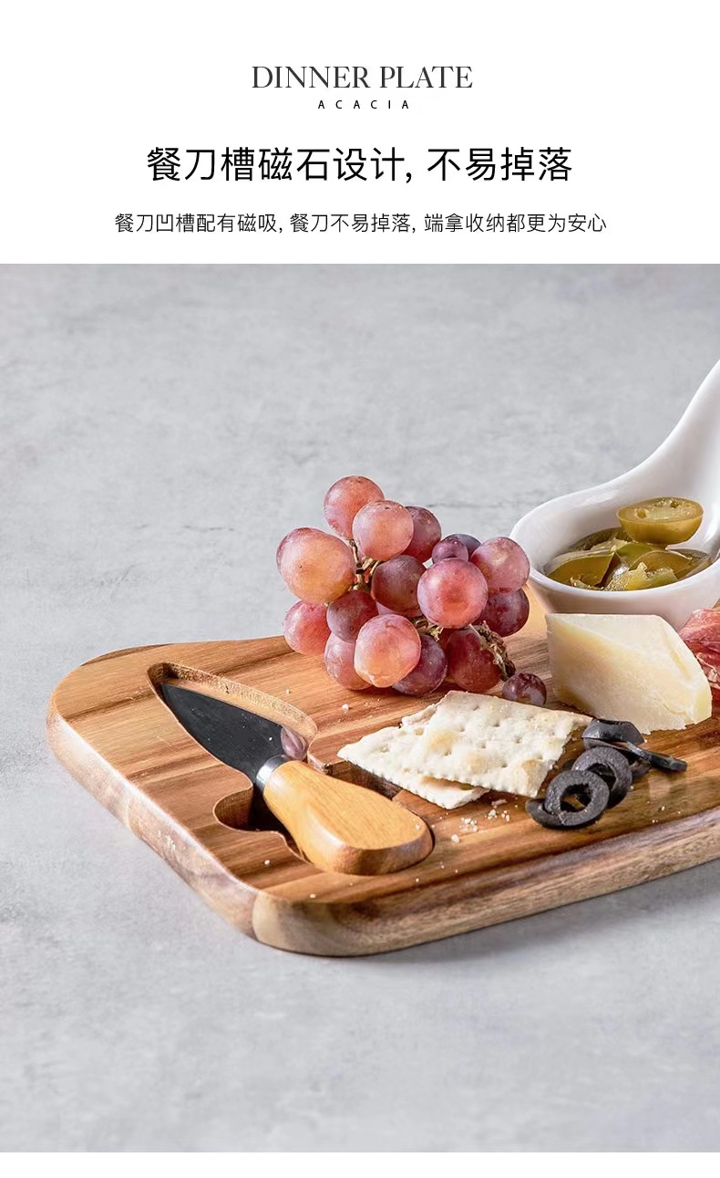 アカシアの木の食事の板のチーズの板の家庭用チーズの板のセットのまな板のヨーロッパ式の洋食のステーキの板の果物のお菓子のトレー