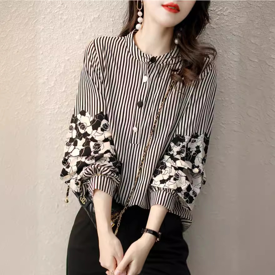 春夏新作ファッションエレガントプリントシフォンシャツファッションエレガントプリント大袖チベット肉シャツ上着レディース