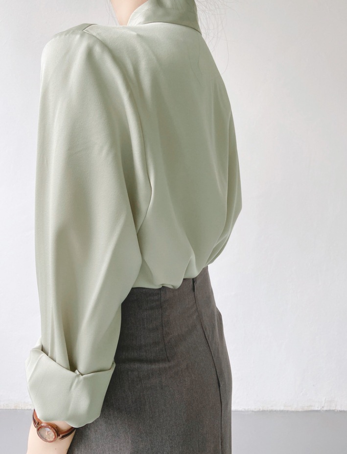 優しくて優雅な長袖のシャツの女性の春の新型のシンプルで流行的な百合は気質の通勤シャツの女性を重ねて着ます。