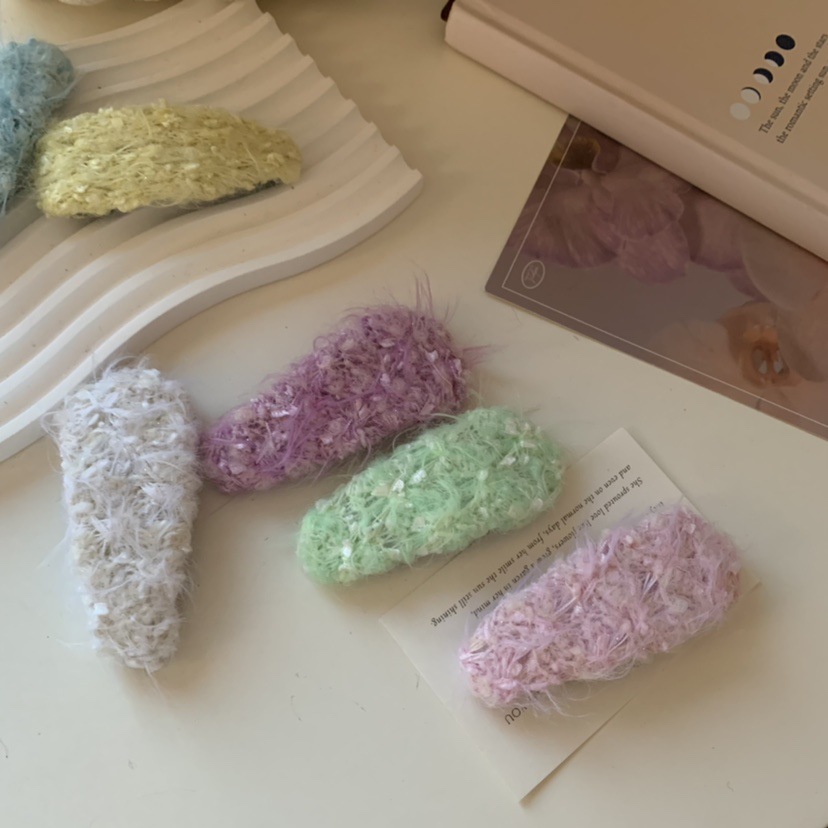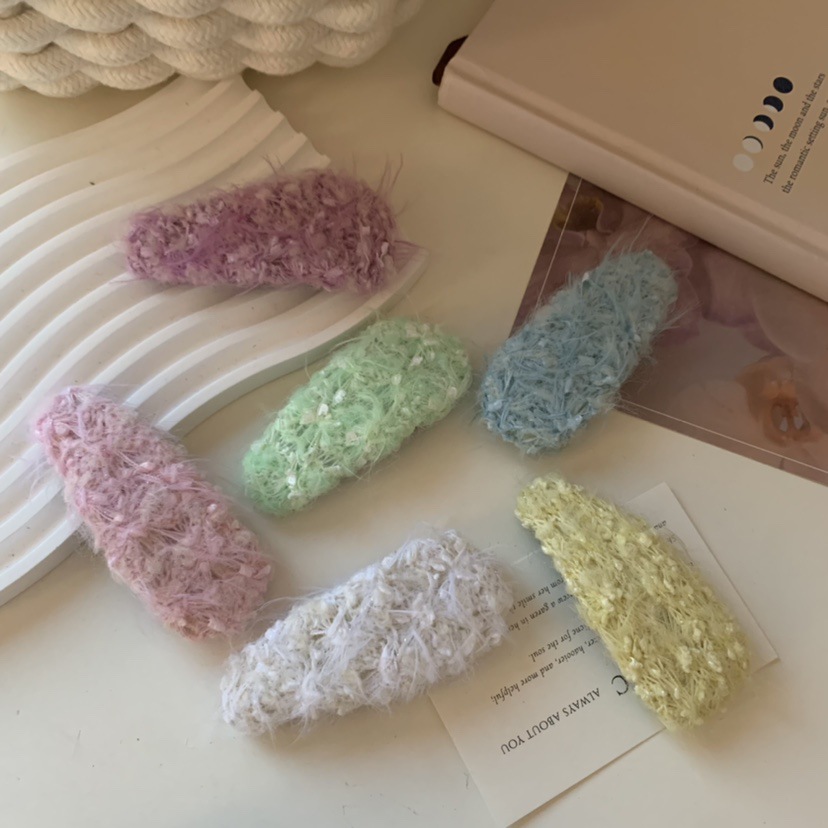 韓国系かわいい少女風カラーbbクリップ毛毛毛髪側クリップ前髪クリップ百合クリップ秋冬髪飾り