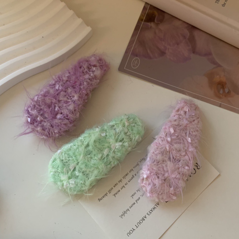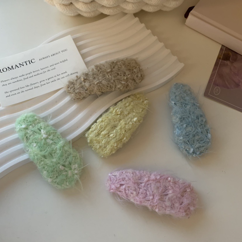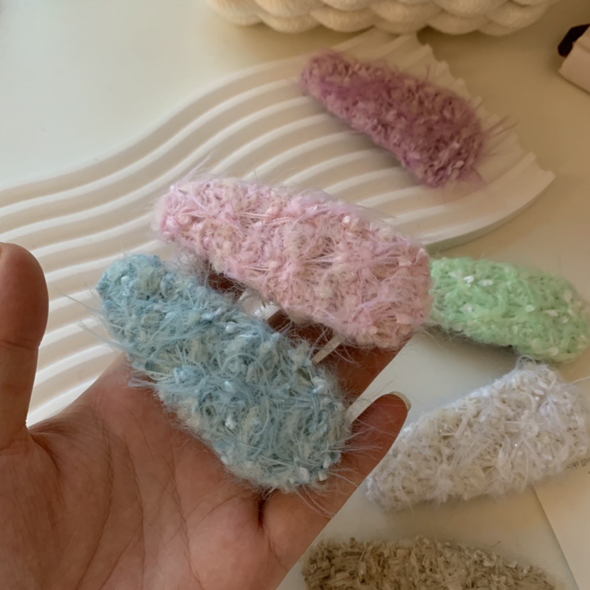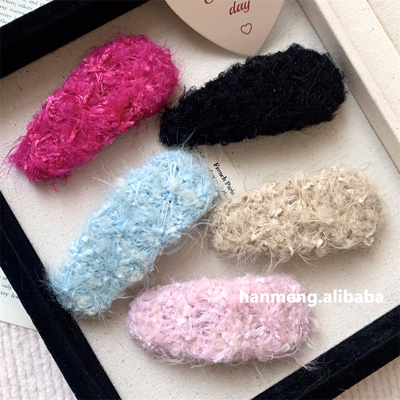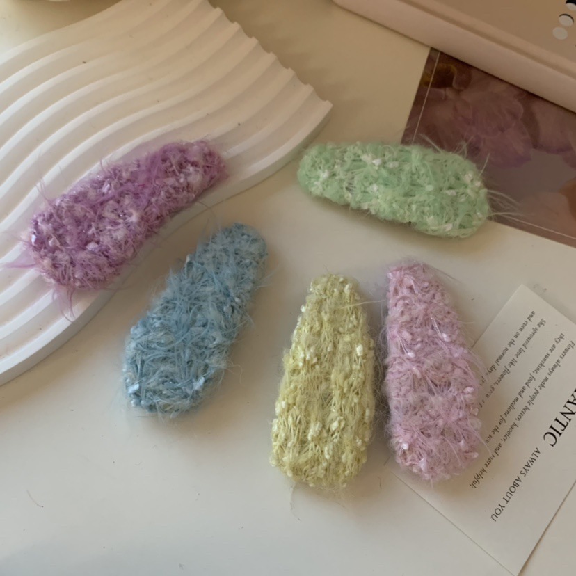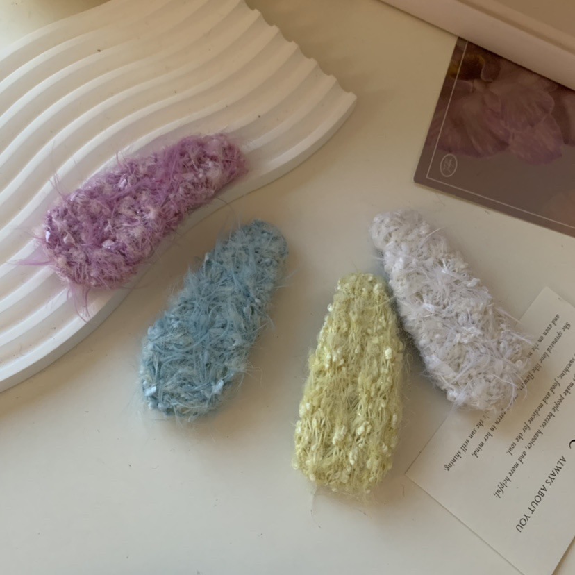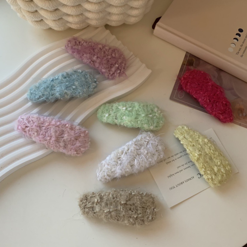 秋冬の毛糸編みヘアクリップbbクリップ純色のぬいぐるみの柔らかい少女の前髪のサイドクリップ子供の髪飾りカード