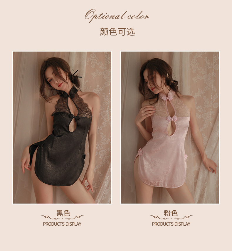 趣味下着のチャイナドレスの小胸透視国朝の大きいサイズの高開のパジャマのレースのお尻の制服の誘惑のスーツ