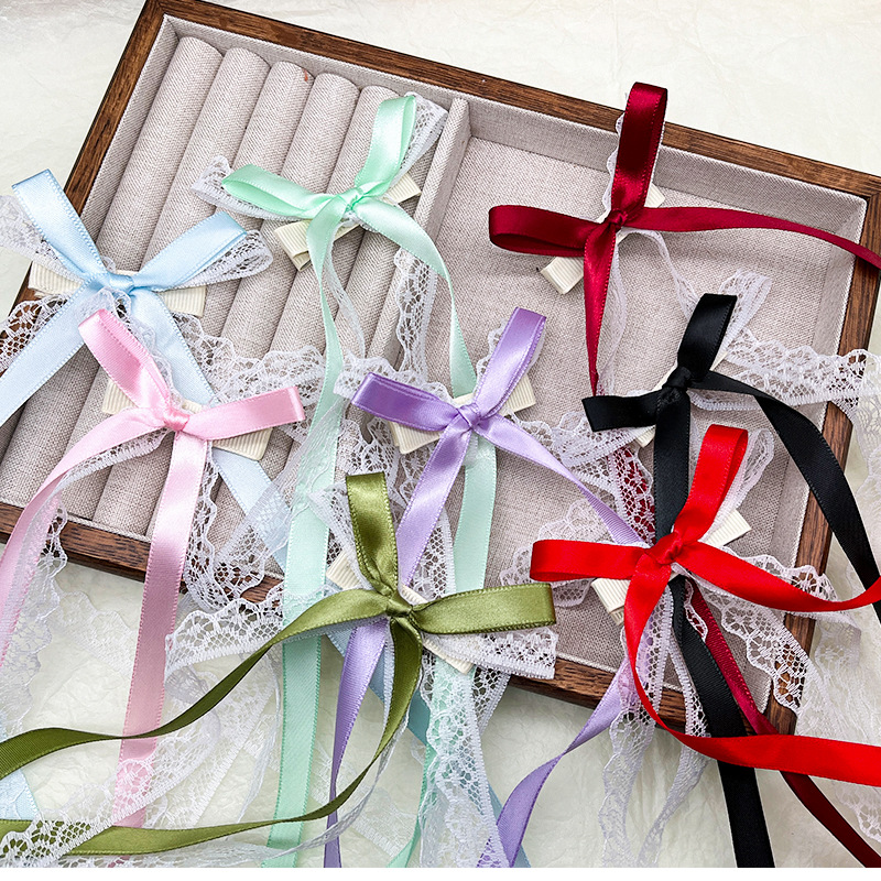 新しい色のレースの蝶結びのリボンのヘアピンの女性の超仙の砕髪の前髪は甘いアヒルの口のクリップのカードを挟みます。