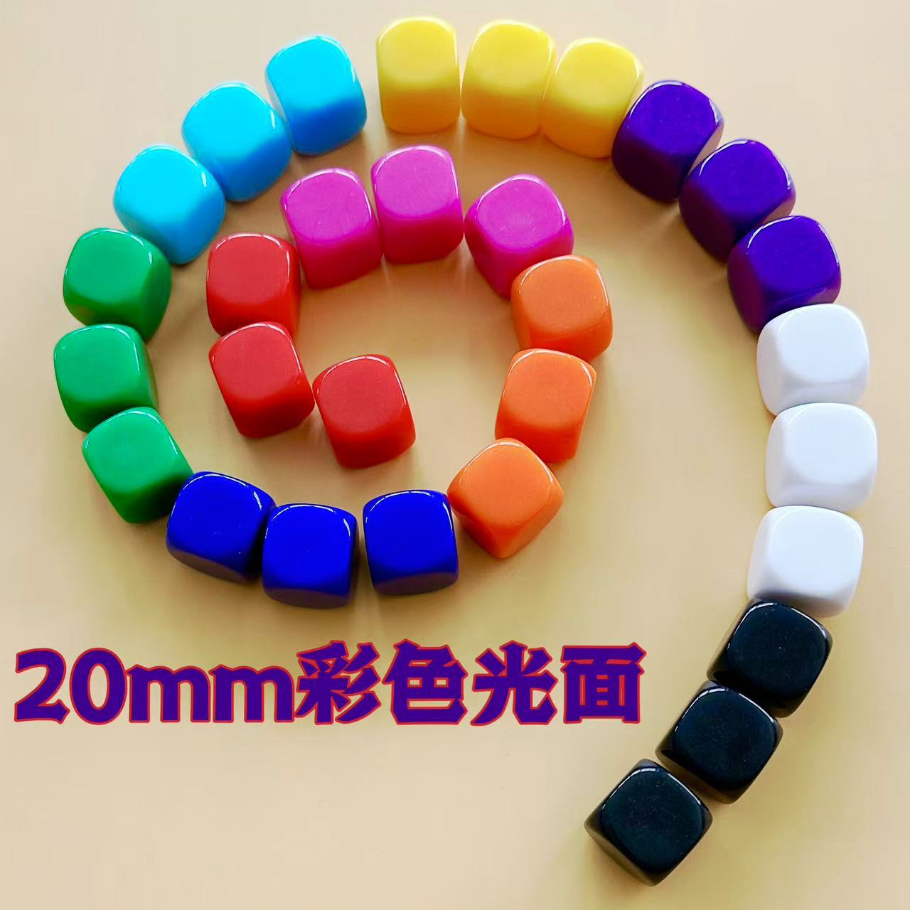 スポット卸売 20mm2cm 角丸カラー光沢のあるプレートサイコロサイコロふるいサイコロ印刷および彫刻可能
