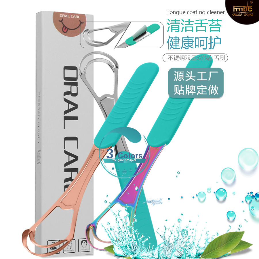 舌の苔のクリーナーの扇風機のタイプの芝の空の双効のステンレスは口臭の舌の苔を取り除いて舌の清潔なツールの欧米の新型を洗います