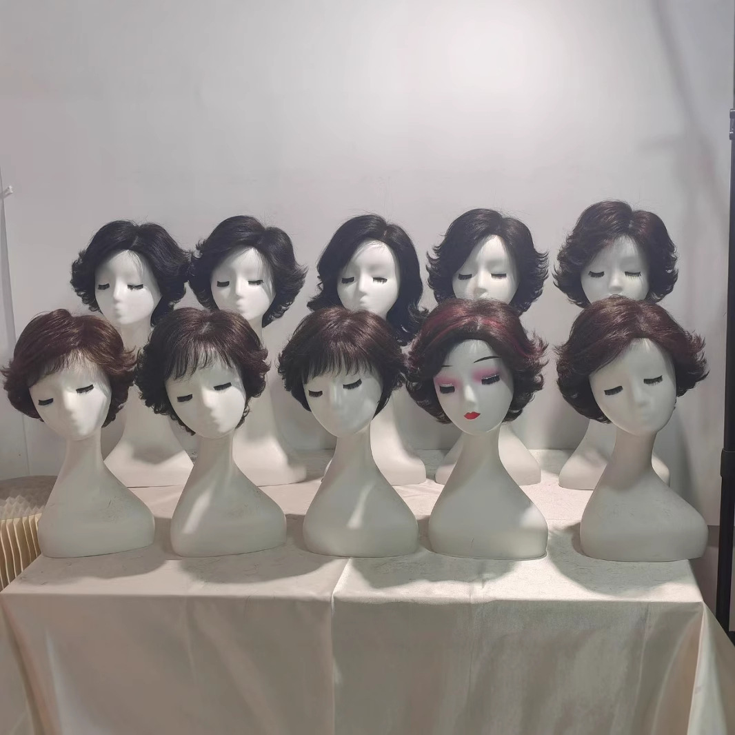 メーカー卸売 全頭用ニードルカバー付き人毛ウィッグ 女性用ショートヘア 中高年女性用 染毛可能 本物の人毛 手編み