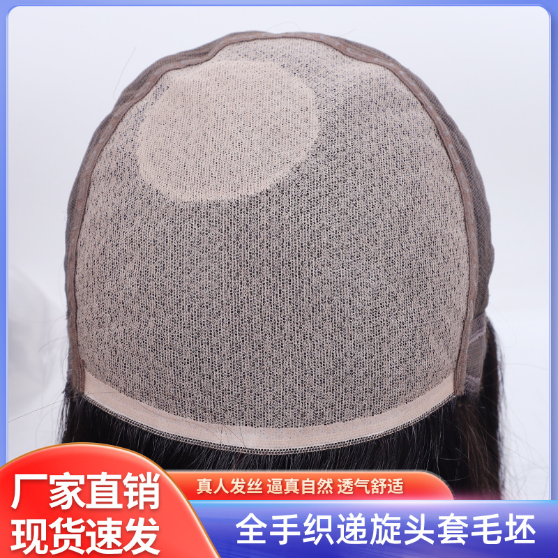 許昌ニードル編み込みヘアウィッグメーカー卸売通気性弾性メッシュ完全手織り人毛女性用ウィッグ