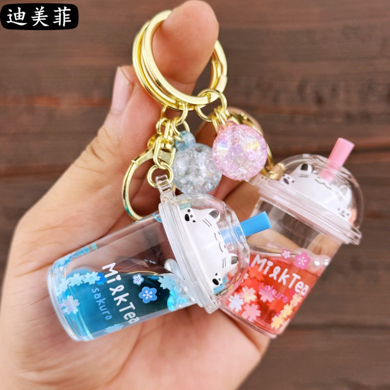 かわいい新型ネットレッド流砂ミルクティーのキーホルダー桜猫ミルクカバー創意自動車キーホルダープレゼント