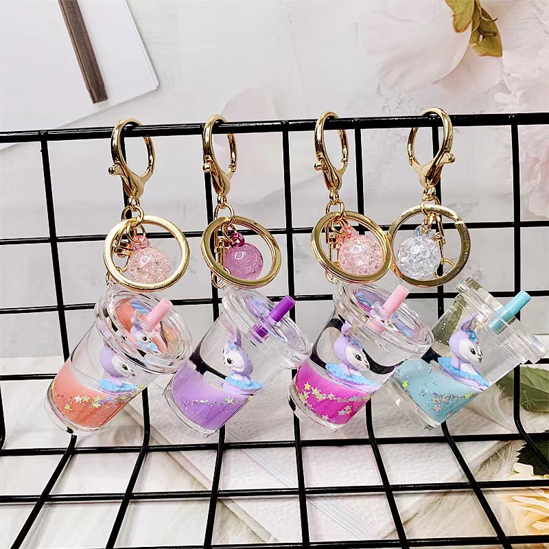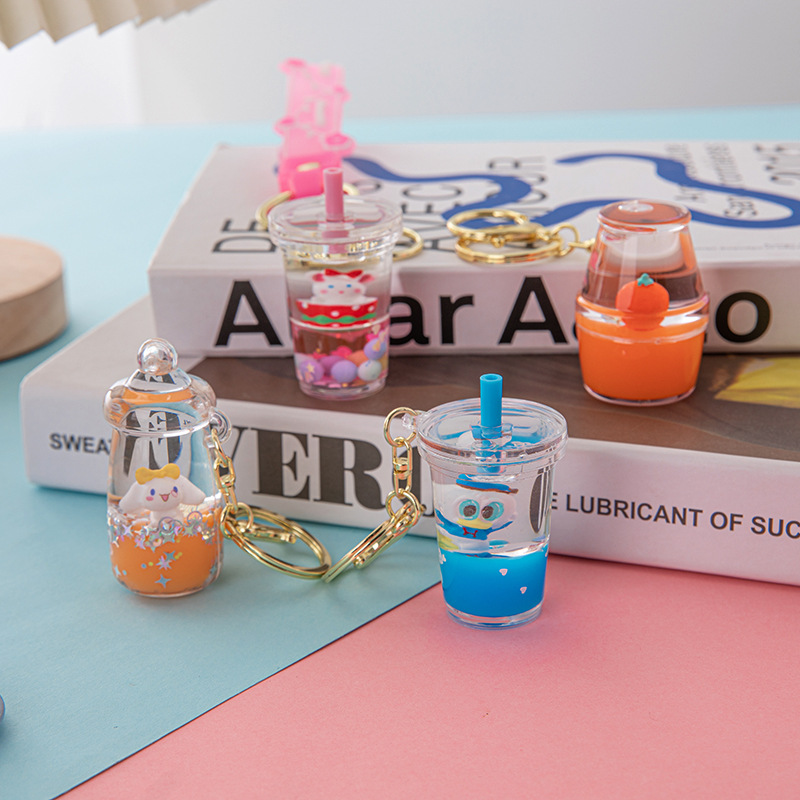 メーカー直販ネット赤ファッションアニメ入油浮遊アクリル粉柔らかい猫流砂ミルクカップキーホルダー