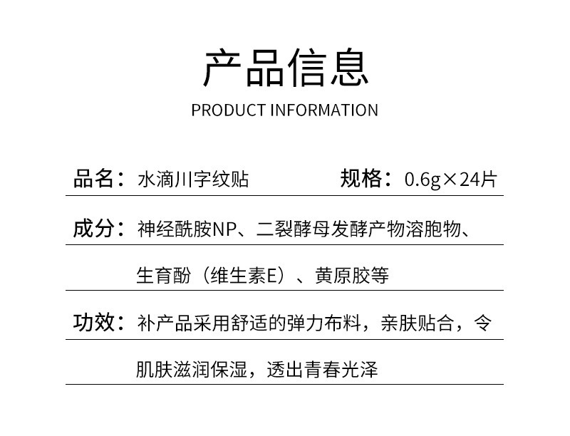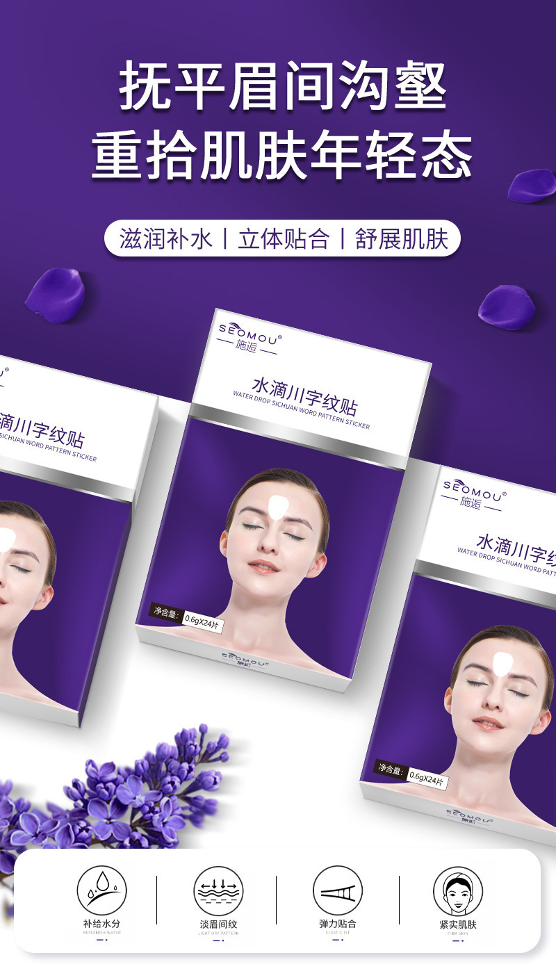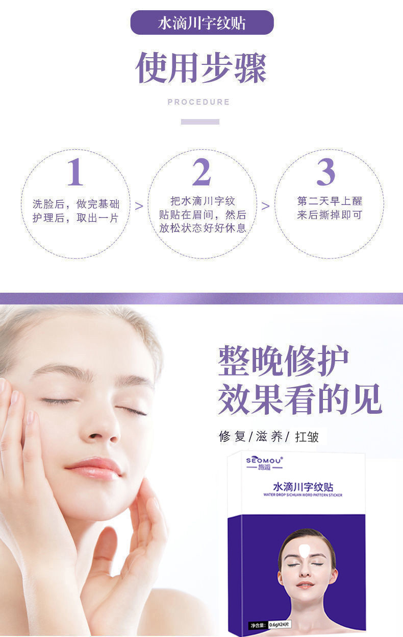 水滴川字型フィルムで額のしわを薄くし、引き締めます。額のしわ、目尻のしわ、眉間のしわを薄くするジェルシールです。