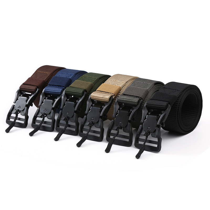 メンズプラスチックマグネットバックル戦術カジュアルキャンバスベルトメンズベルトバックル軍事訓練スポーツパンツベルト卸売