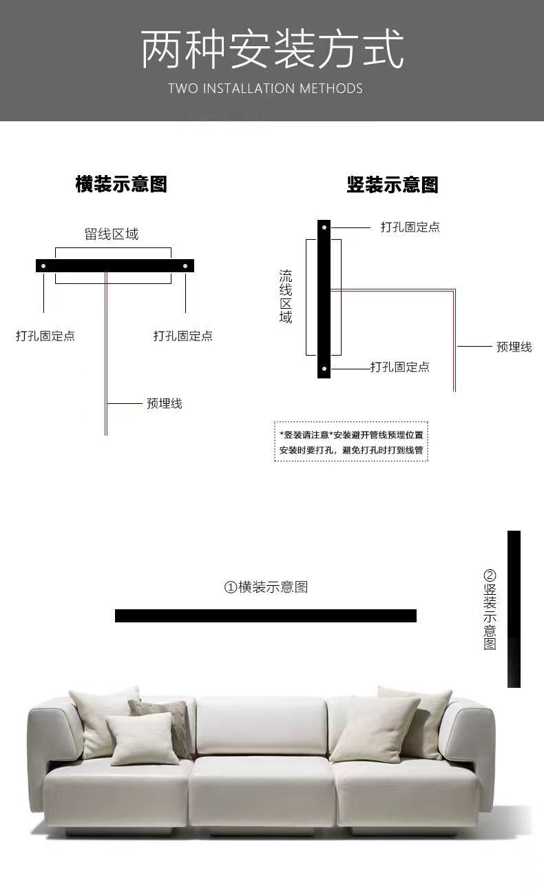 北欧現代一字長条壁灯極簡ファッション階段通路客間寝室灯テレビ壁ソファー背景