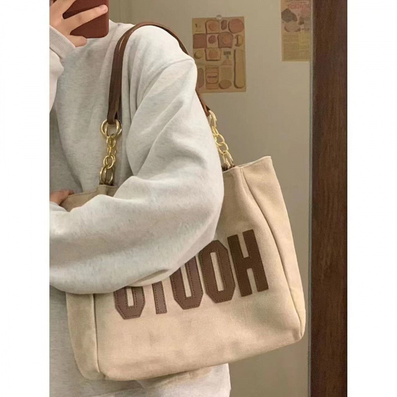 2025年秋新作 韓国風レタリングショルダーバッグ 大容量 レディース カジュアル シンプル 通勤 トートバッグ