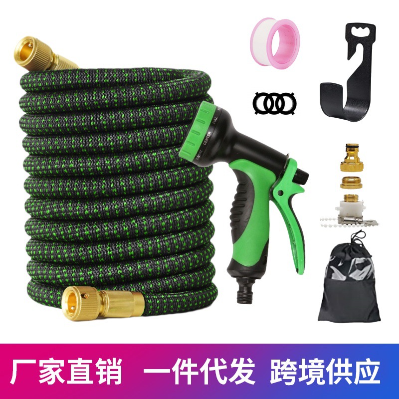 メーカー洗車高圧水道ホース3倍伸縮水道管自動車水鉄砲花園に花をやる黒緑ゴマ色