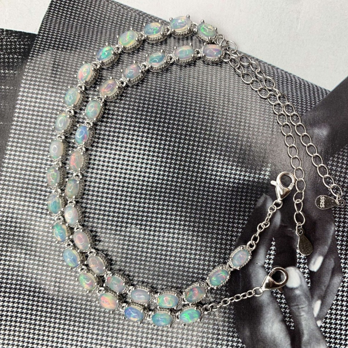 天然カラフルな欧泊ブレスレットS925銀モザイク欧泊ブレスレット