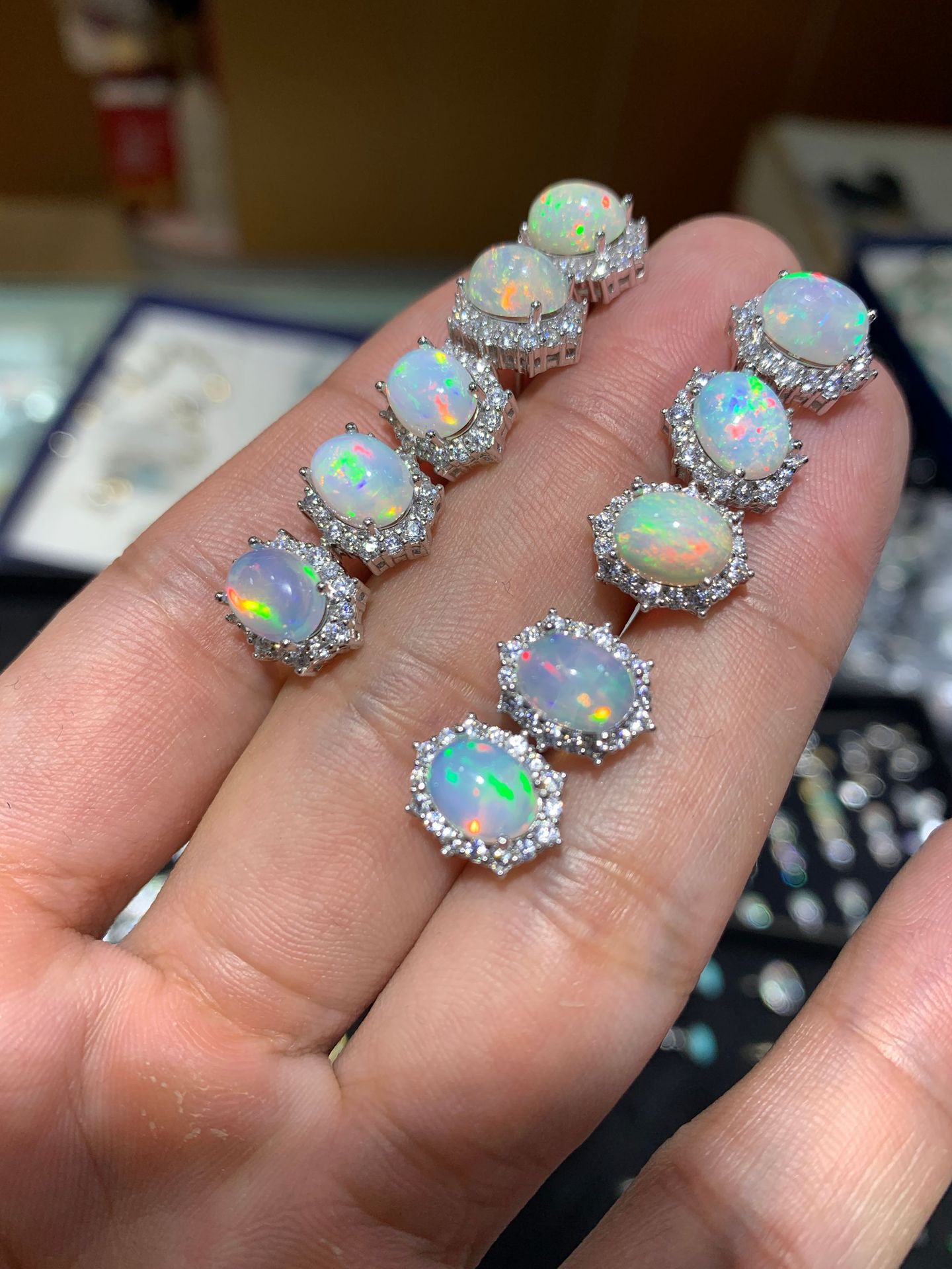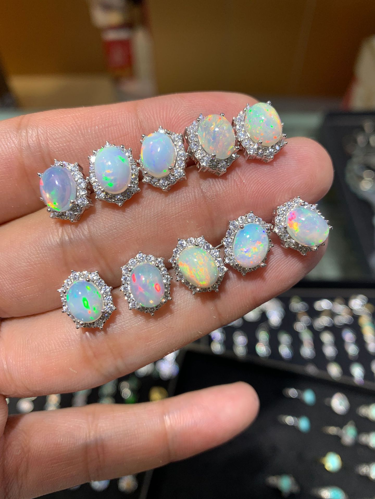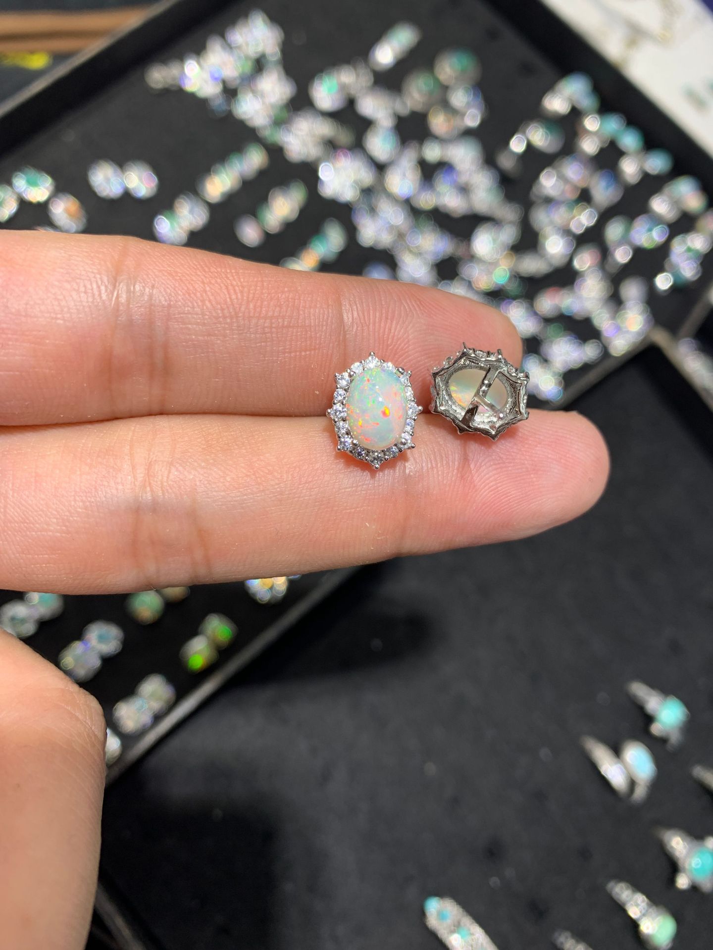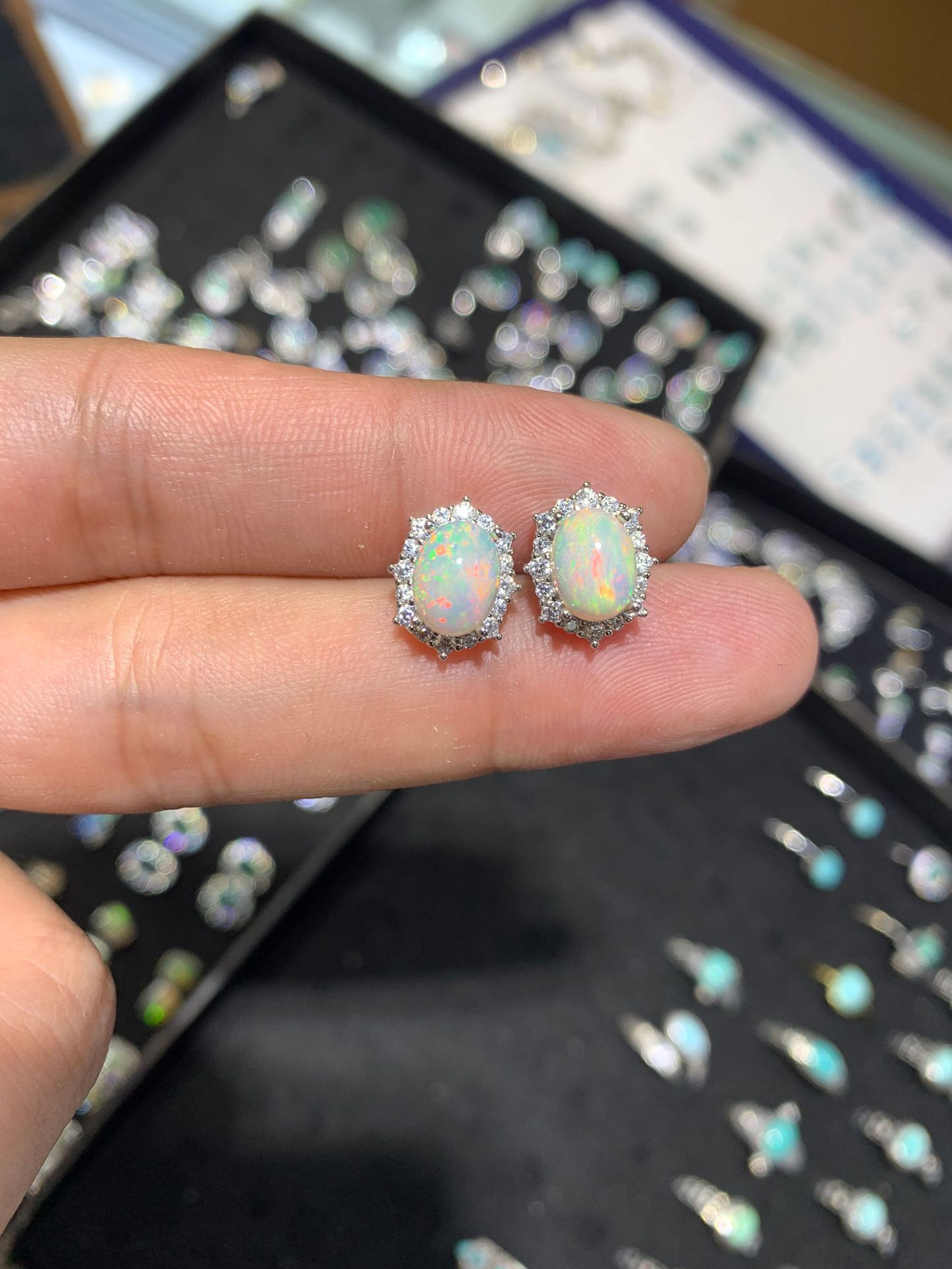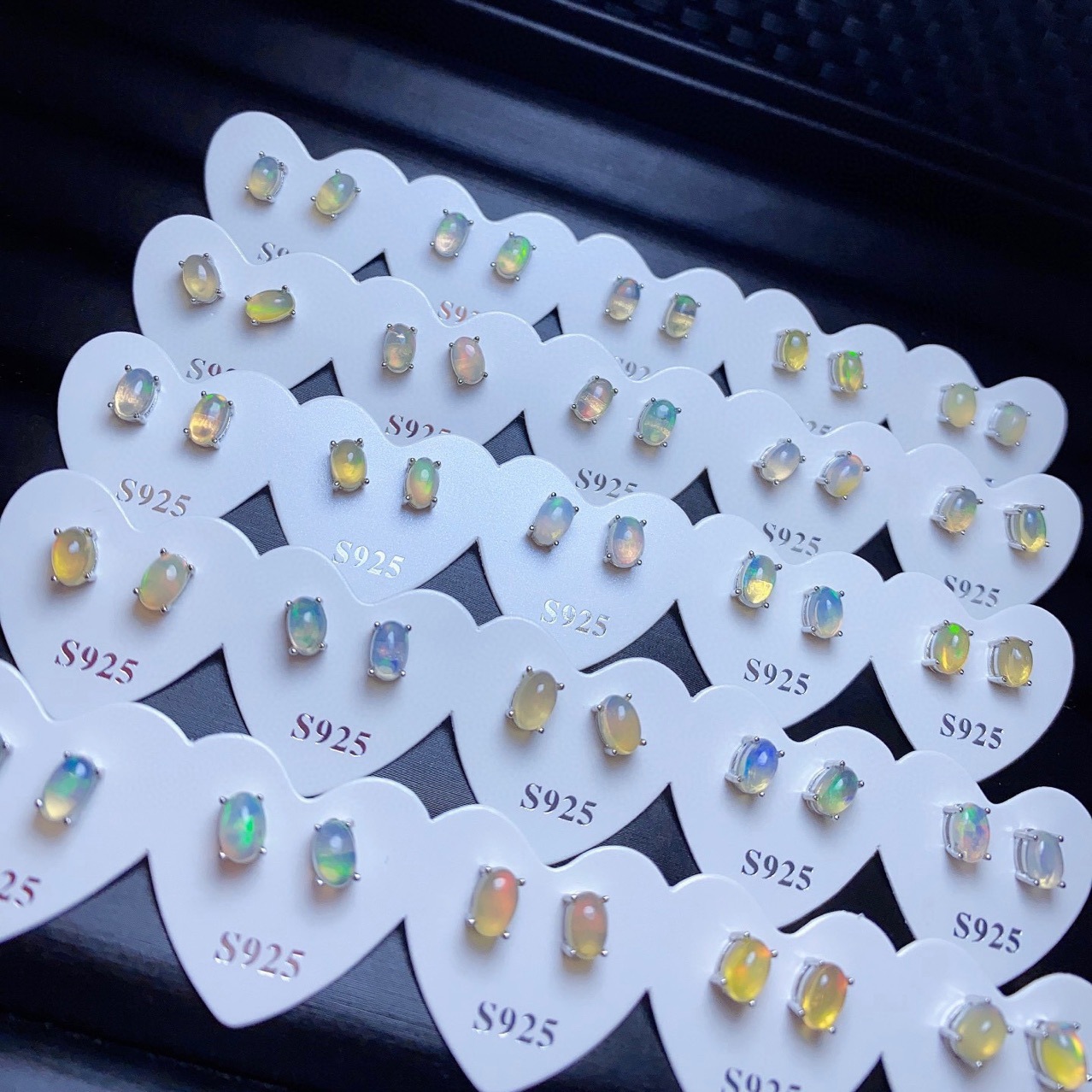 ナチュラルオパールスタッドピアス S925 スターリングシルバー象嵌メインストーンサイズ 5*7 ミリメートルオパールスタッドピアス
