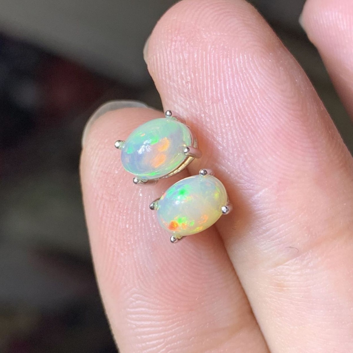 天然オパールイヤリング 925シルバー製 オパール象嵌イヤリング 卵型8x6mm オパールイヤリング
