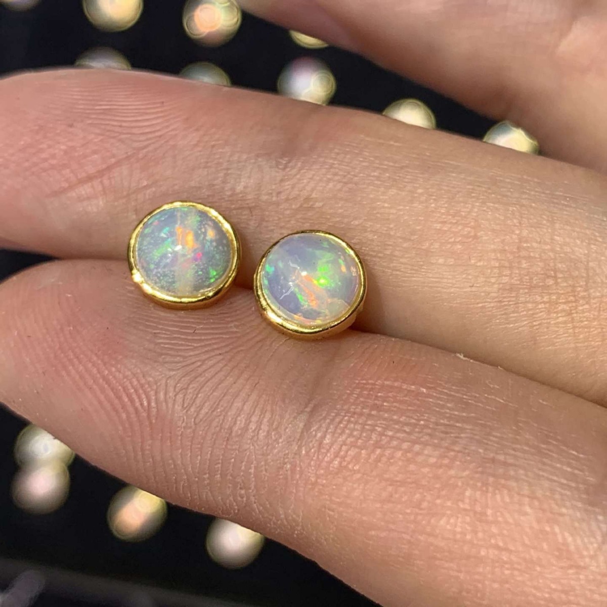 天然オパールイヤリング 925シルバー製 エッジ加工 レディースオパールイヤリング