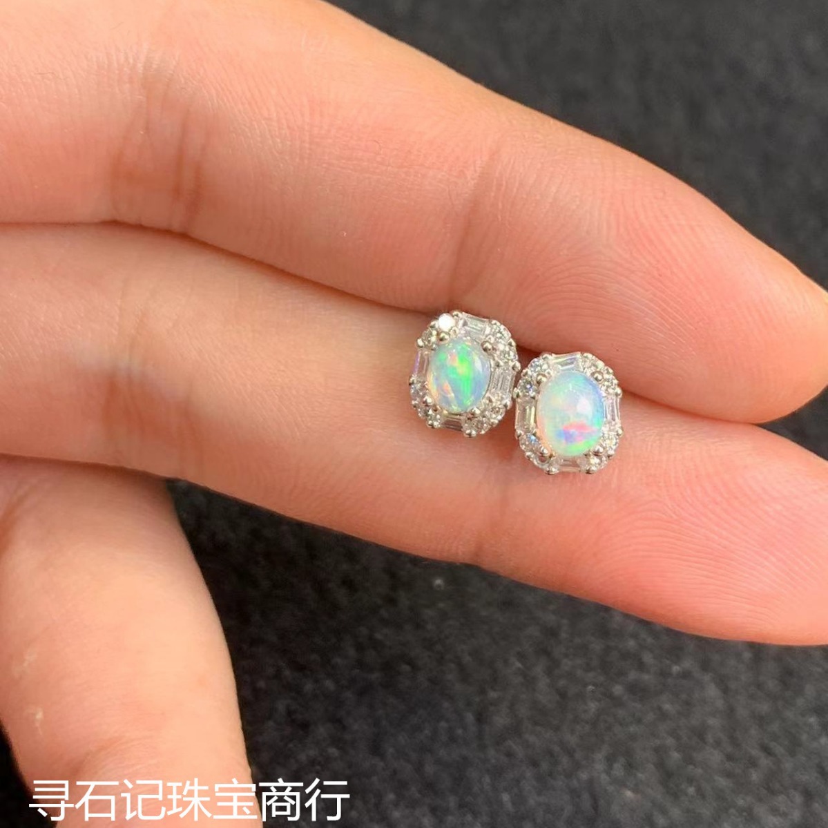 天然ピアス欧泊925銀耳飾り火彩爆豪宝欧パー銀ピアス精緻シンプル男女耳飾り