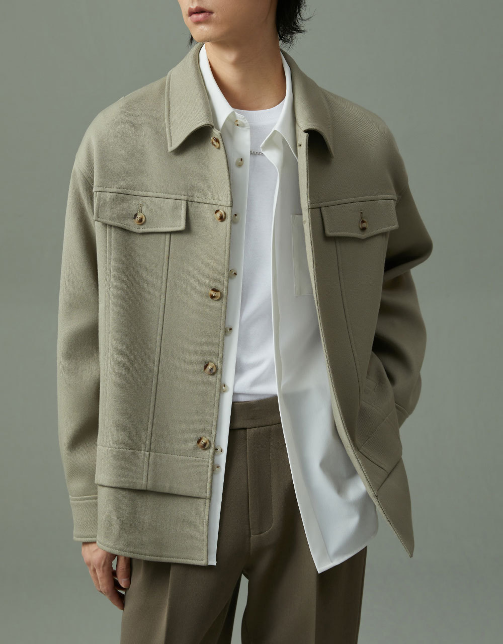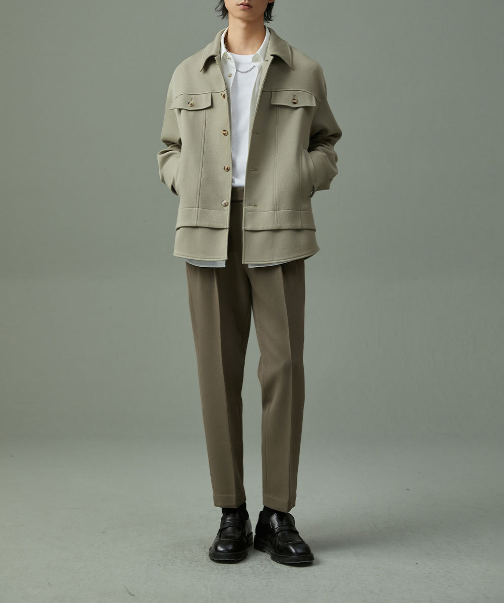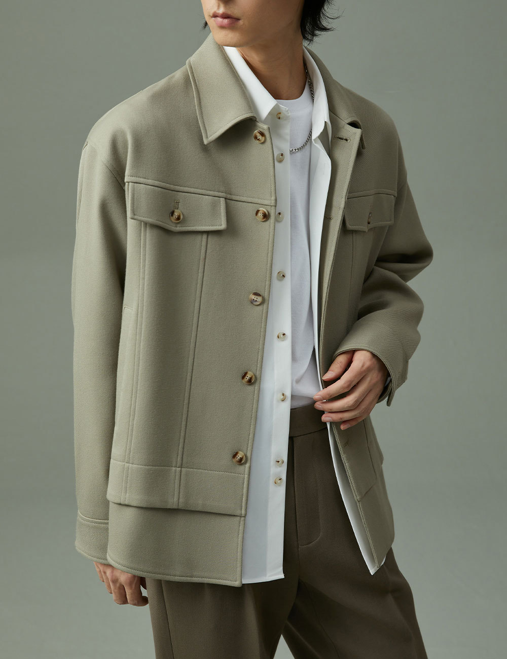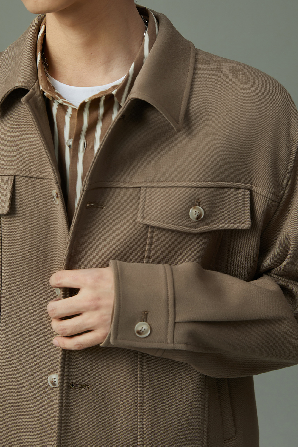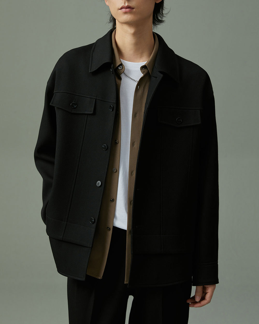秋冬両面使えるメンズショートコート アルバカ襟付きウール混紡コート ジャケット
