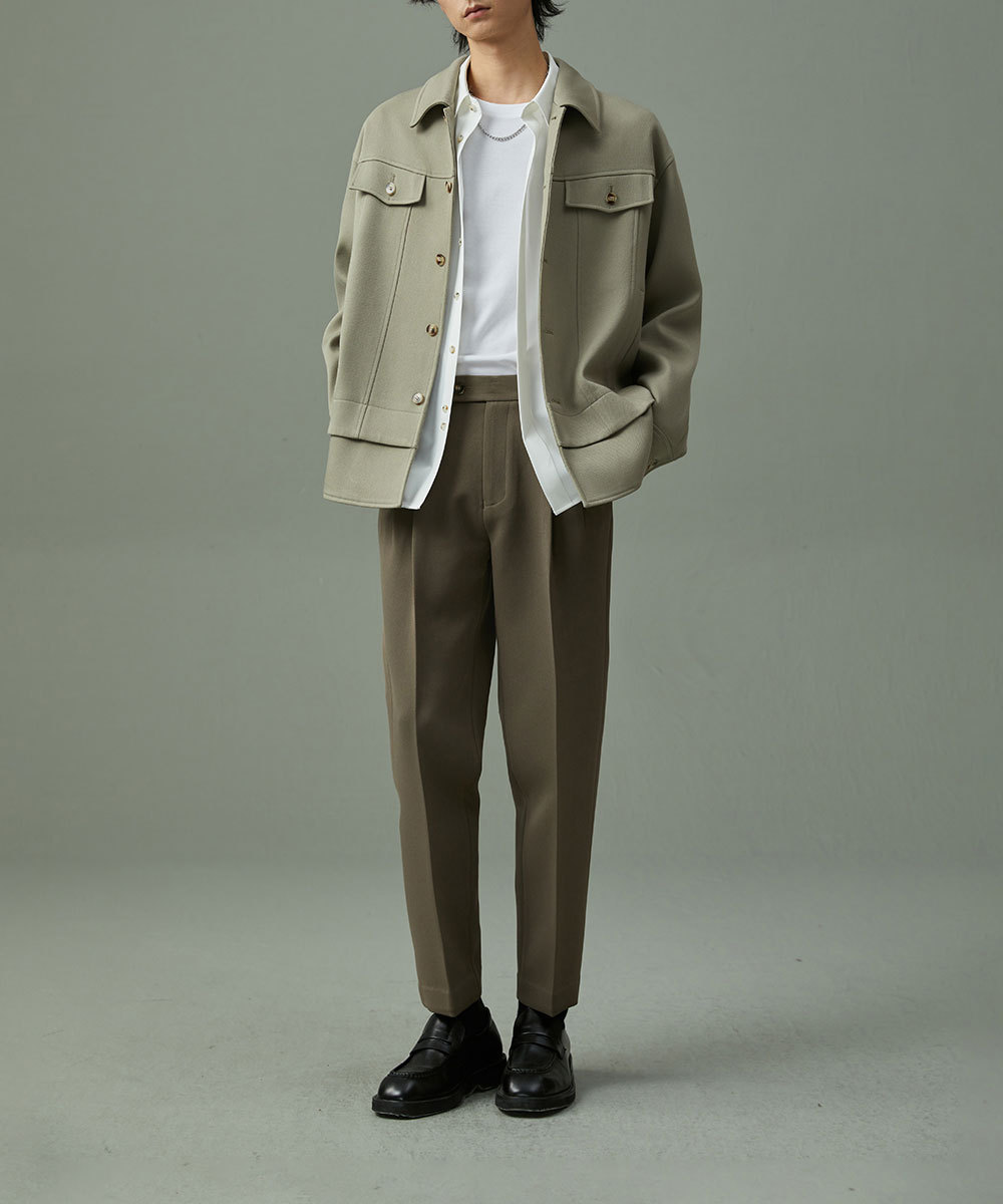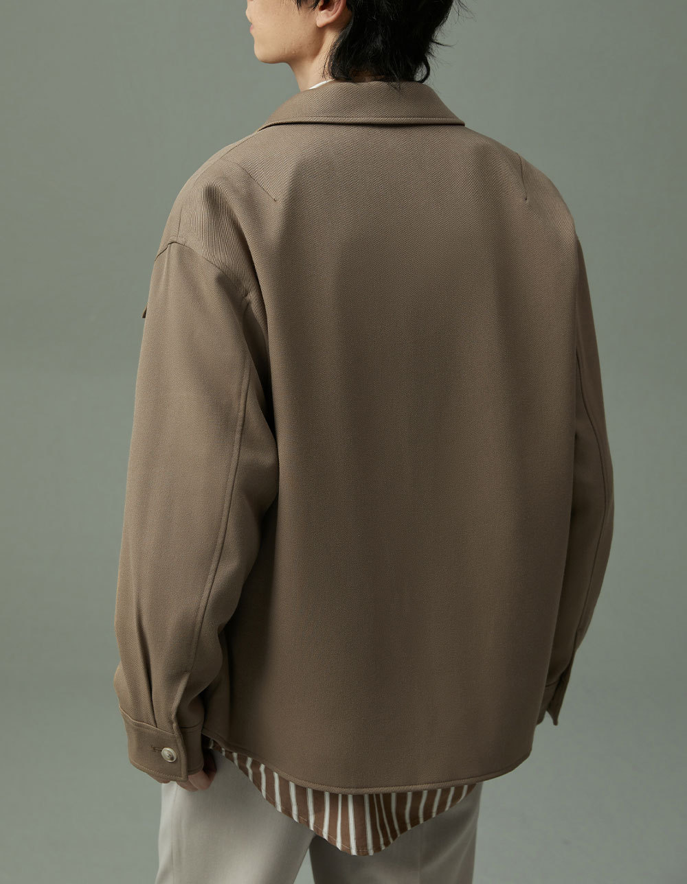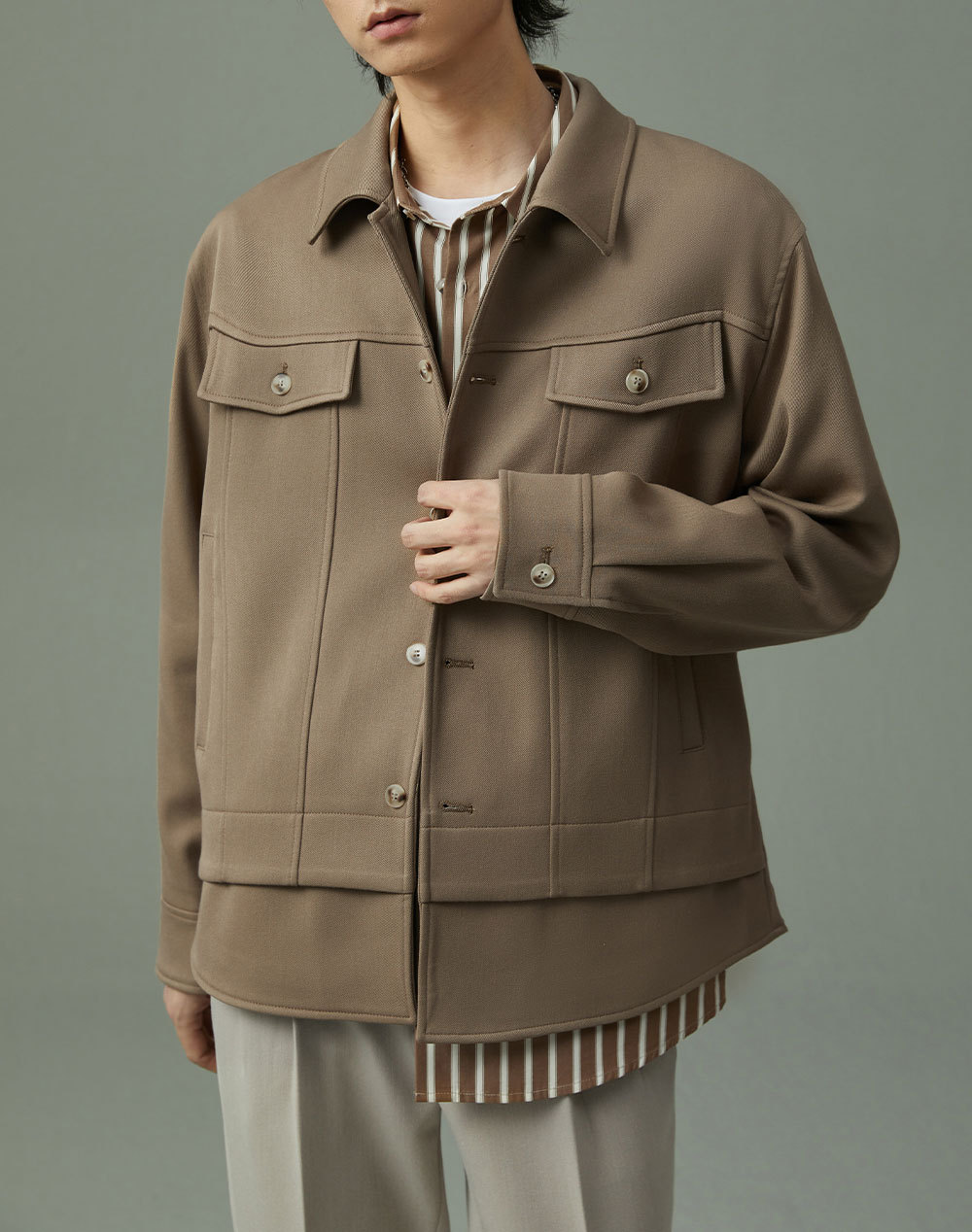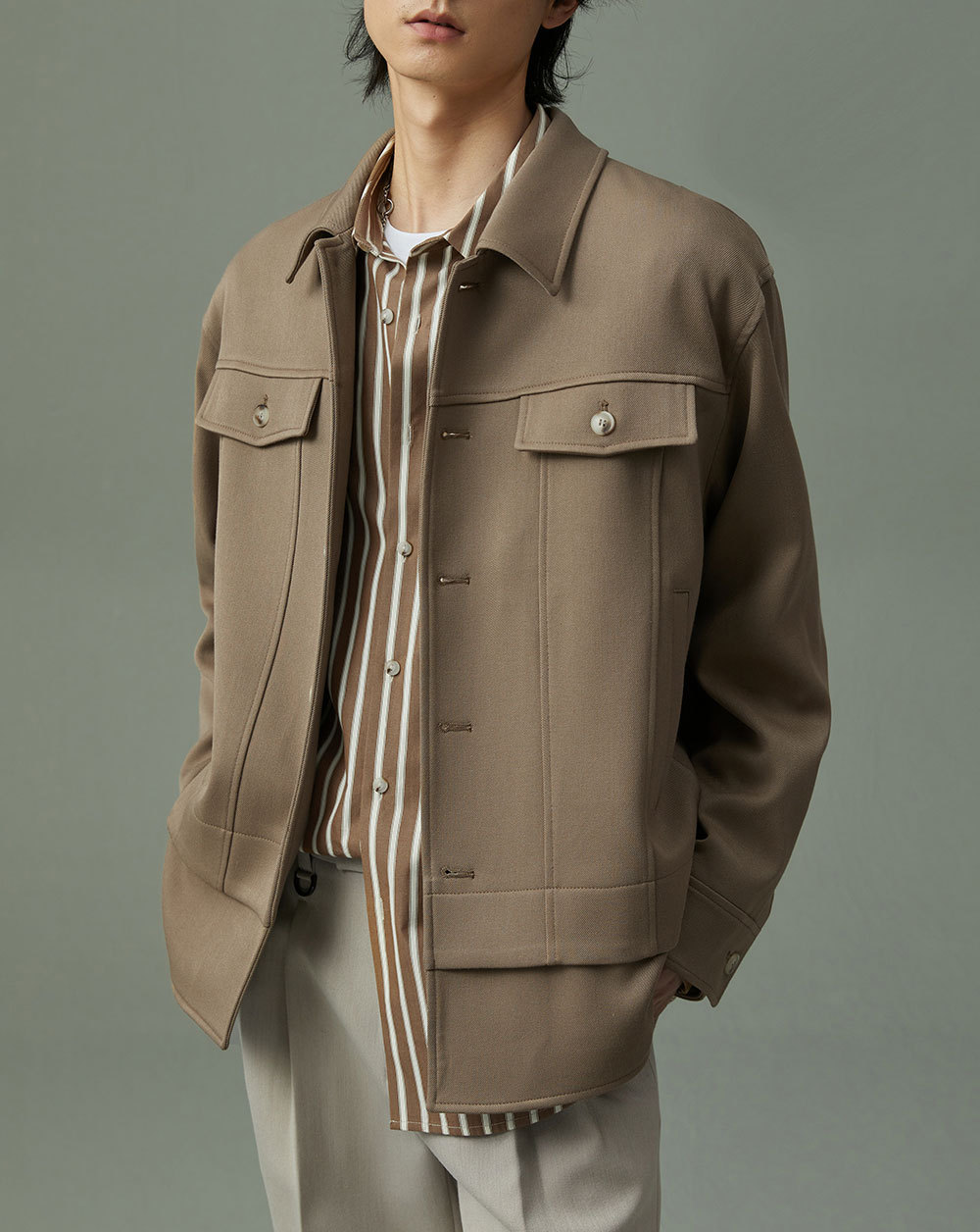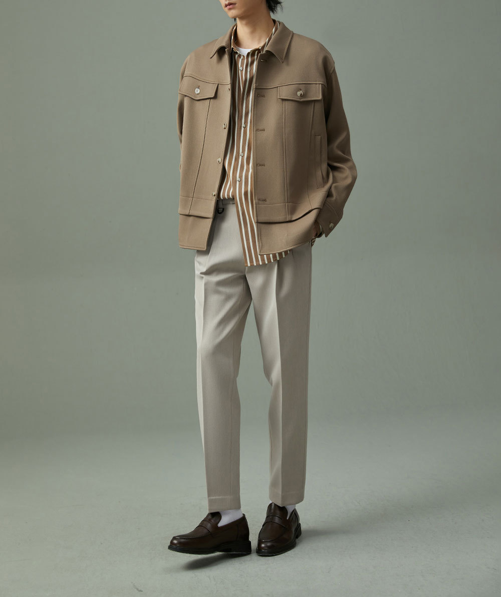 秋冬両面使えるメンズショートコート アルバカ襟付きウール混紡コート ジャケット
