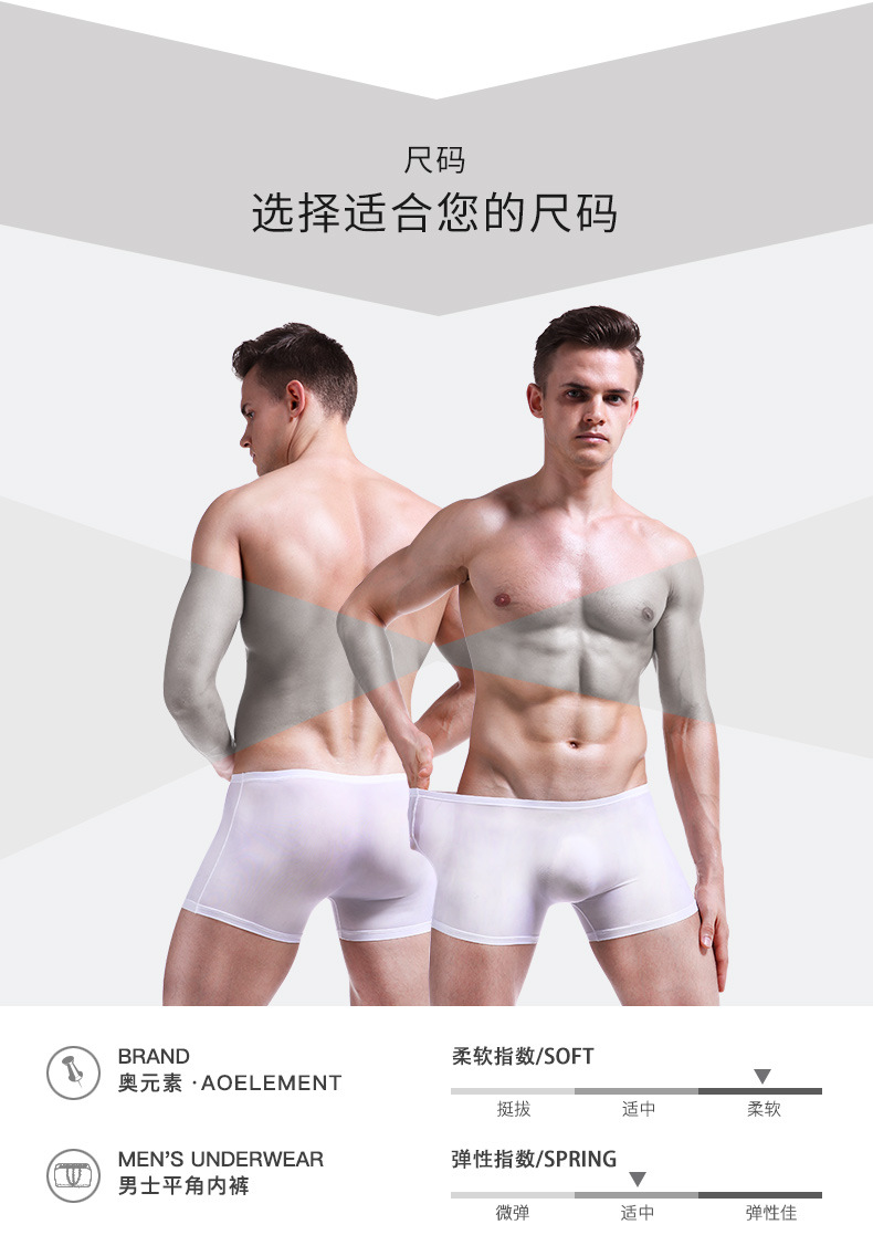 氷糸下着男性無痕超薄透明平角ズボン頭セクシー一枚式夏通気青年潮四角