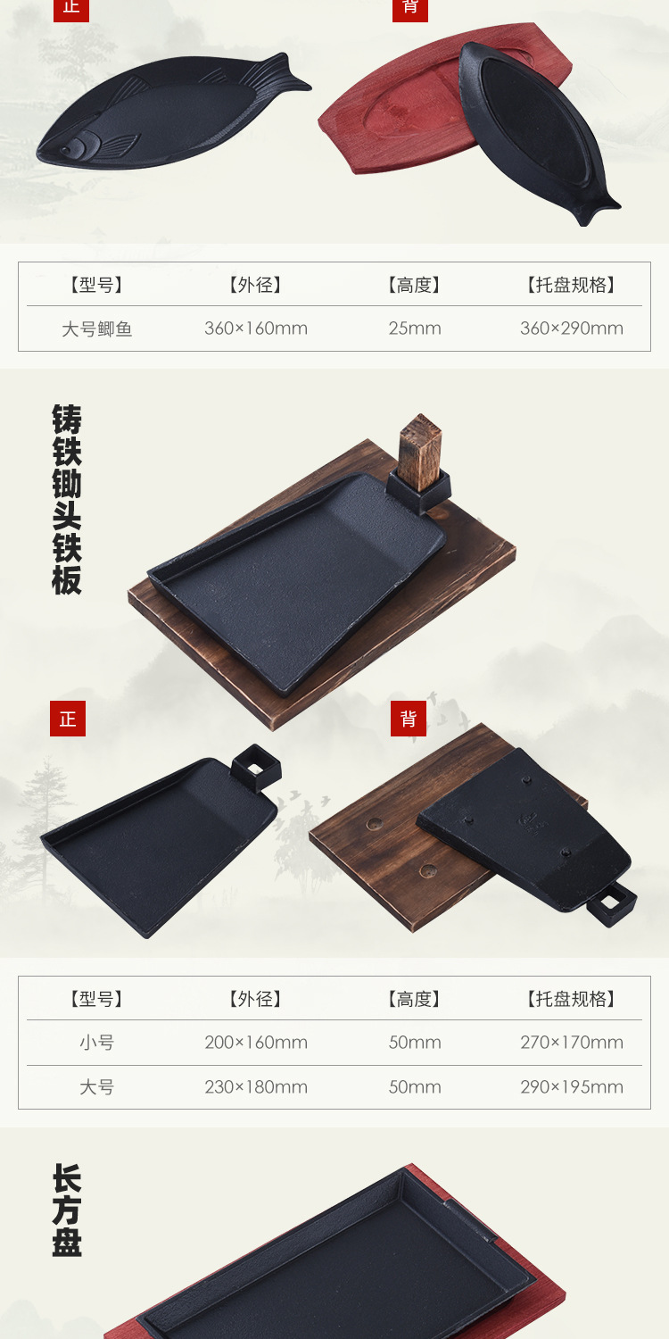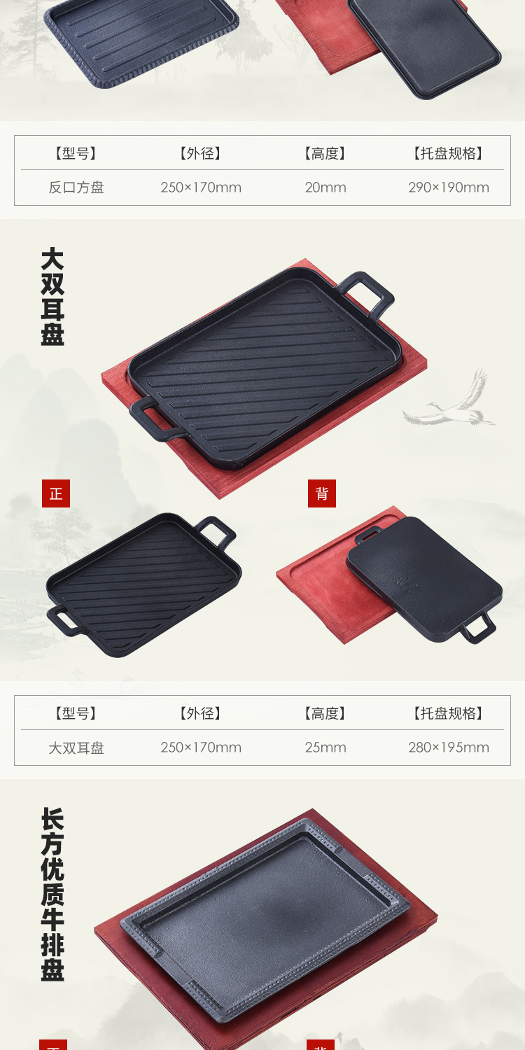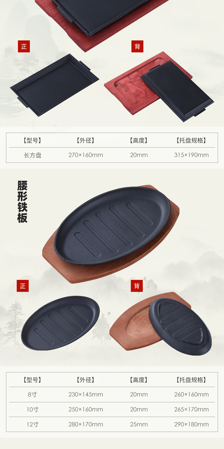 鋳鉄鉄板焼き皿業務用小分け焼き魚皿焼き肉皿ガスレストランフライステーキ皿鉄板